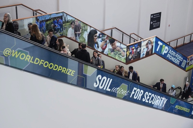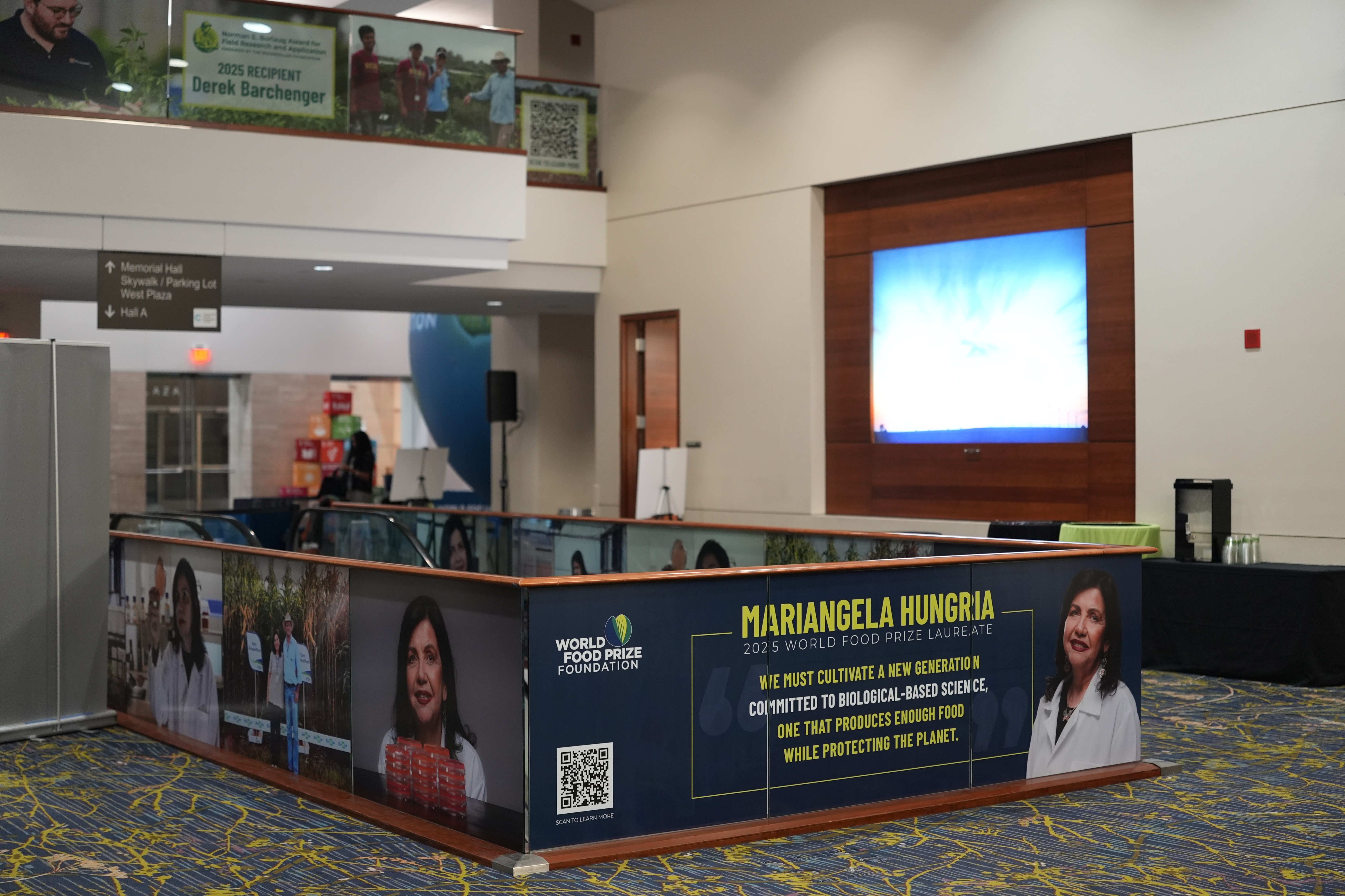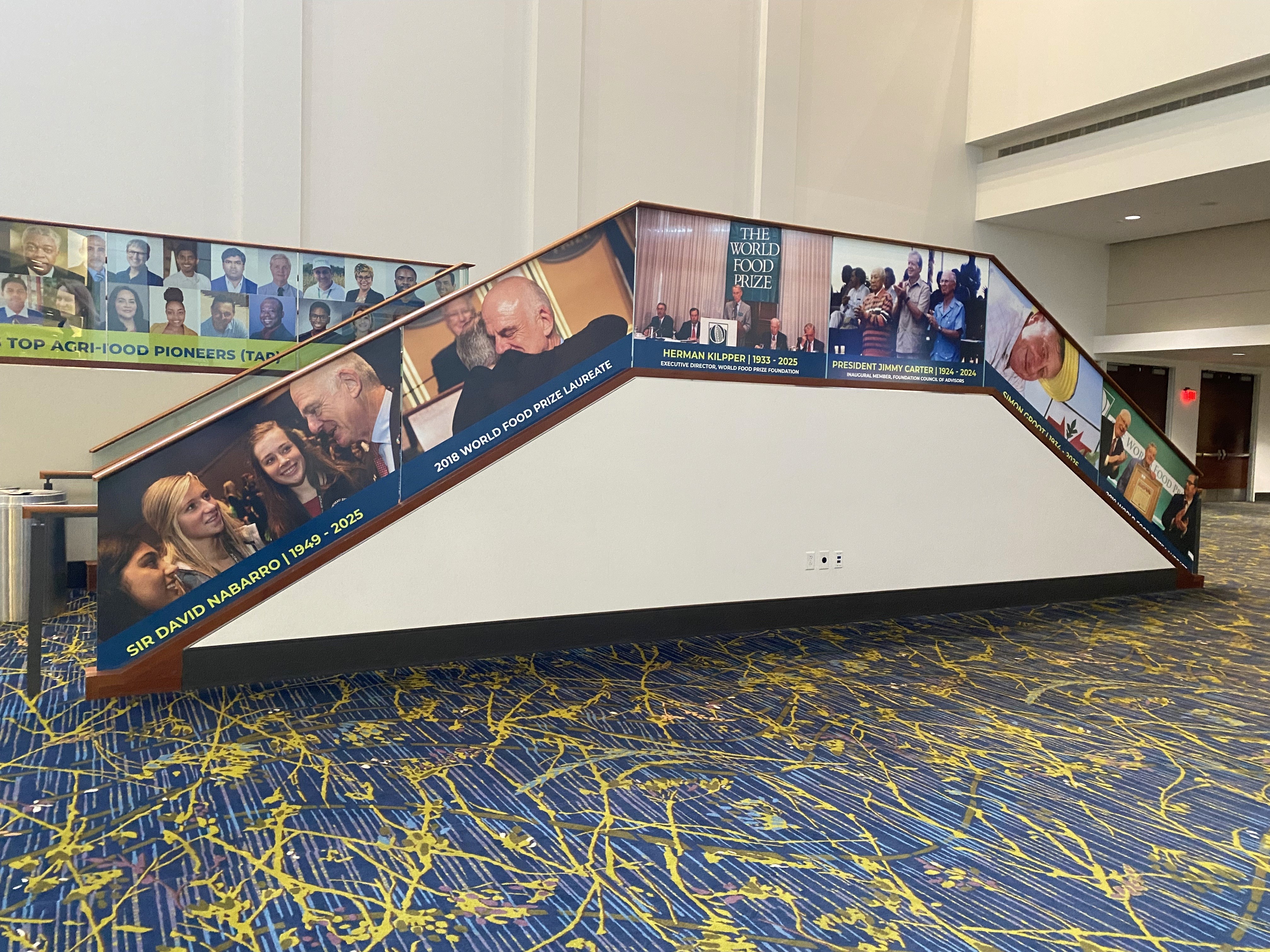 A collection of spatial graphics covering stairwell, escalator, window clings, and backdrops for multiple clients used for conference and marketing campaign.